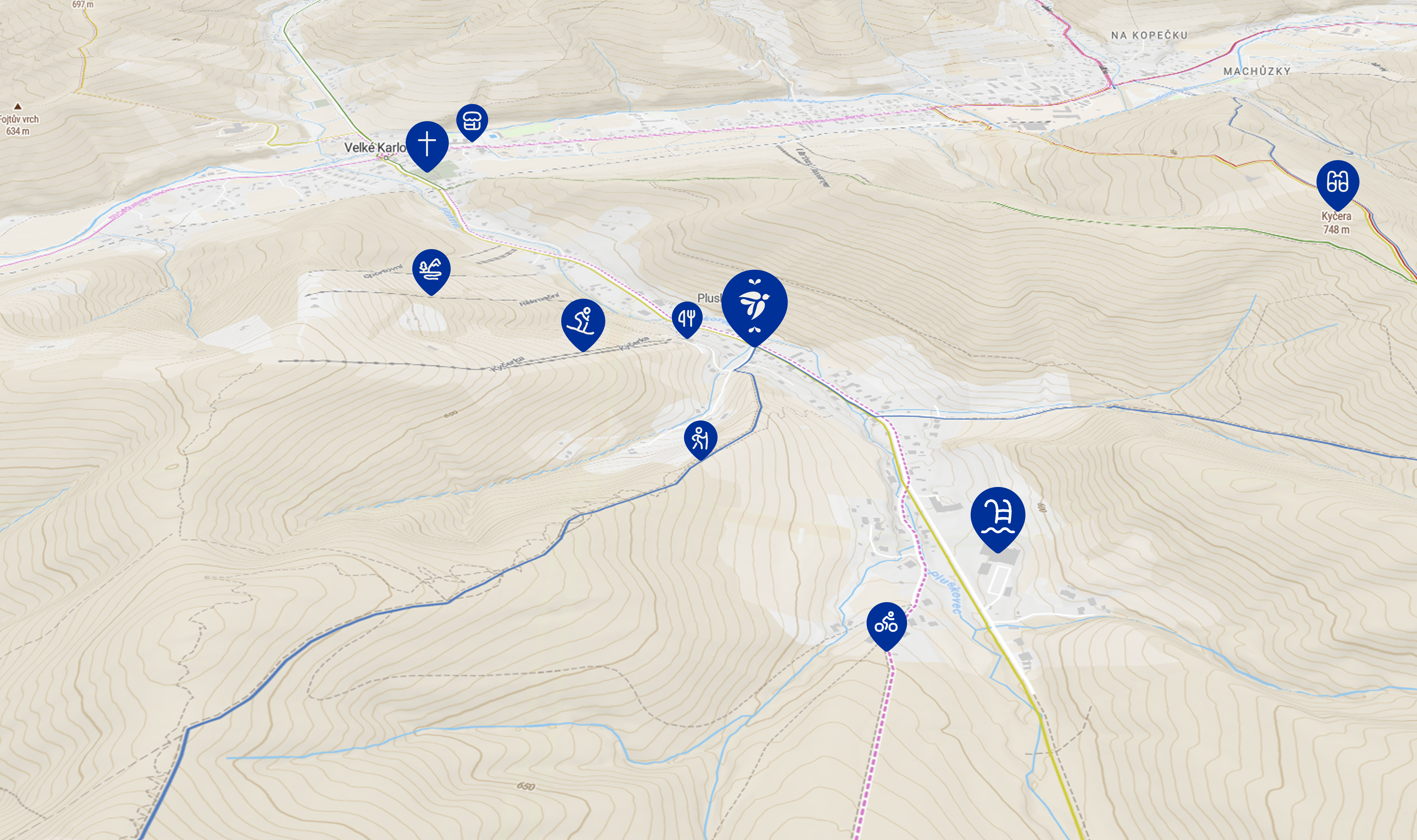 Nad chalupami je aj restaurace Kyčerka, ski areál s večerním lyžováním a kúsek dál Vodní svět pro malé i velké cérky a ogary.